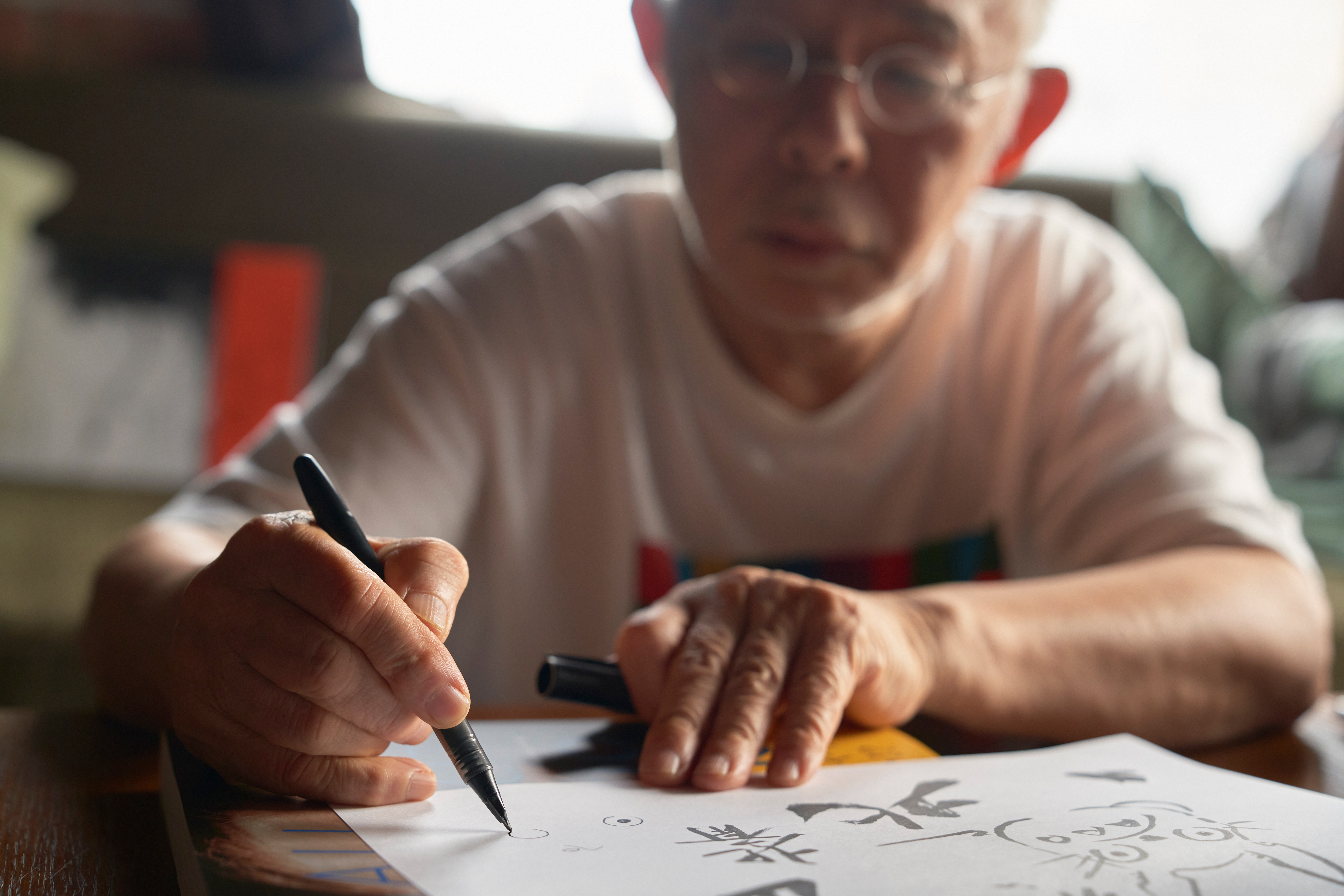 彼が小学1年生か2年生の時に、僕が書を教えてたんです。そうしたら「じぃじ、はらい方がまずいんだよ」「ここで力抜かなきゃ」とかズバズバ指摘してきて。どんな字を書いているのかと孫の手元を見たら、これがなかなかの腕前で。教えるはずが、逆に教わることになっちゃったんですよ(笑)。